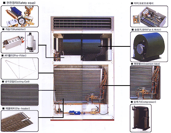 Fan & Motor | 응축기(Kw) | 가열기(Kw) | 가습기(Kw) | 동력(Kw) |