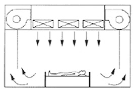 | 환자의 행동 | 기류는 천장으로부터 바닥으로 향하는 수직 층류이므로 환자는 자유로운 행동이 가능 |