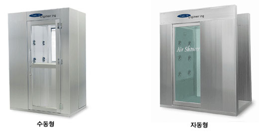 Air Shower는 Clean Room으로 입실전 가지고 들어가는 물건이나 입실자의 의복에 부착된 먼지균을 노즐을 통해 강력한 초고속 AIR를 불어내 재거하는 장치이다. 또한 Showering중에는 Clean Room Door에 InterLock이 되어 있으며, 분해조립이 용이하여 보수 및 점검이 간단하게 설계 제작되어 있다.